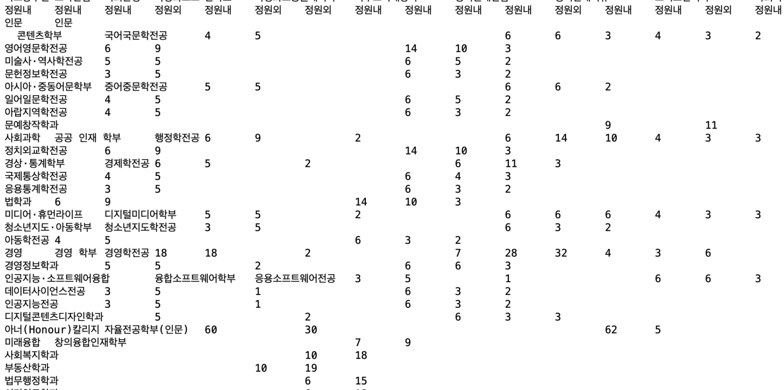 문제를 해결하기위해 팀원들이 고민하다 나온 차선책은 바로 pdf형식이 아닌 html형식의 입시자료를 기본 파싱대상 자료로