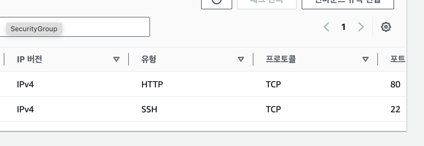 그 페이지의 보안그룹 및에 링크 클릭