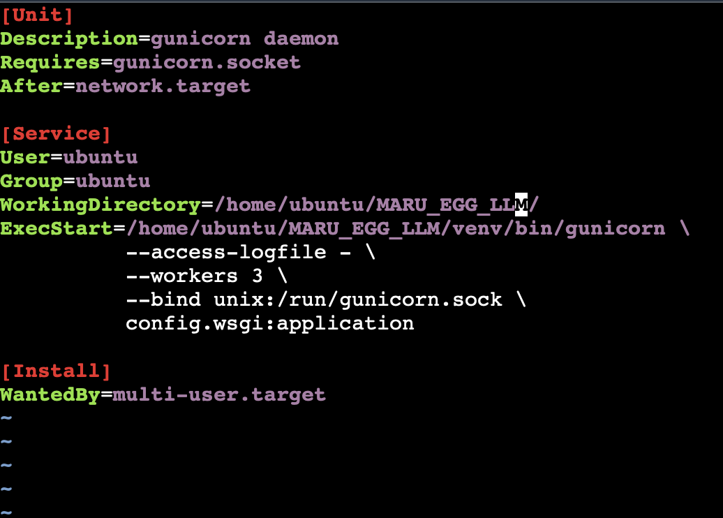 1. sudo vi /etc/nginx/conf.d/MARU_EGG_LLM.conf