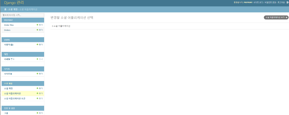 => 소셜 애플리케이션에 들어와서 소셜애플리케이션 추가 버튼을 클릭한다.