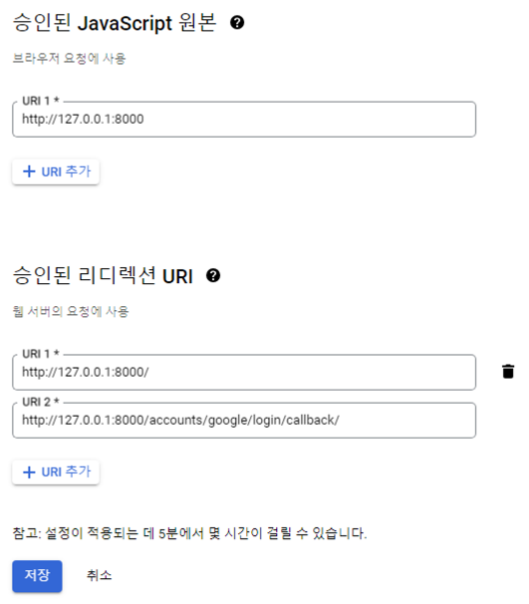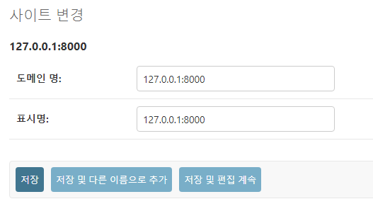 => 원래 example.com에서 다음과 같이 127.0.0.1:8000으로 변경해 준다.