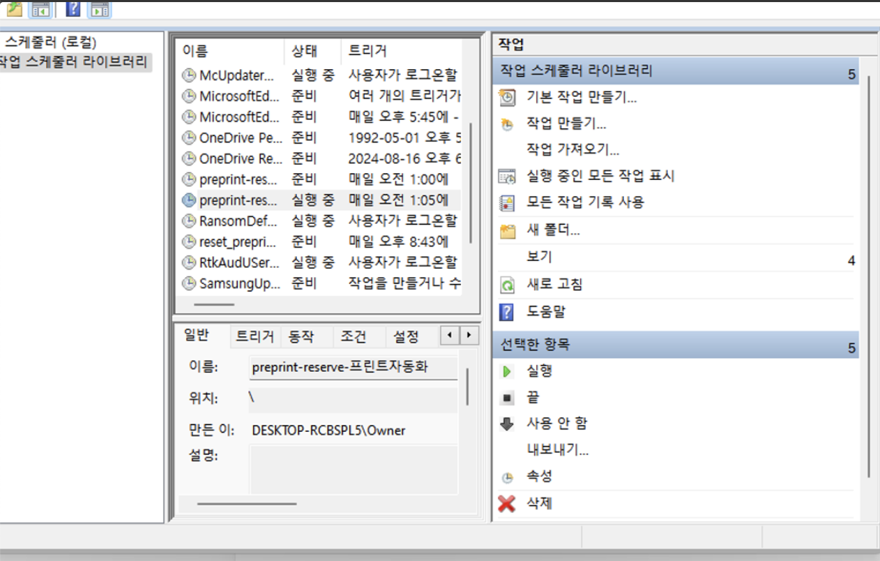 => 현재는 이렇게 윈도우 스케줄러 설명을 진행해서 매일 오전 1시에 자동 실행되게 설정해두었다.
