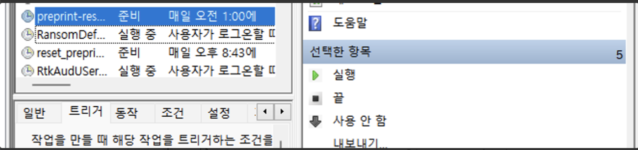 => 현재는 서비스 운영을 위해 이렇게 윈도우 스케줄러 설정을 해두었고, 매일 새벽 1시 5분에 실행될 수 있게 하였다.