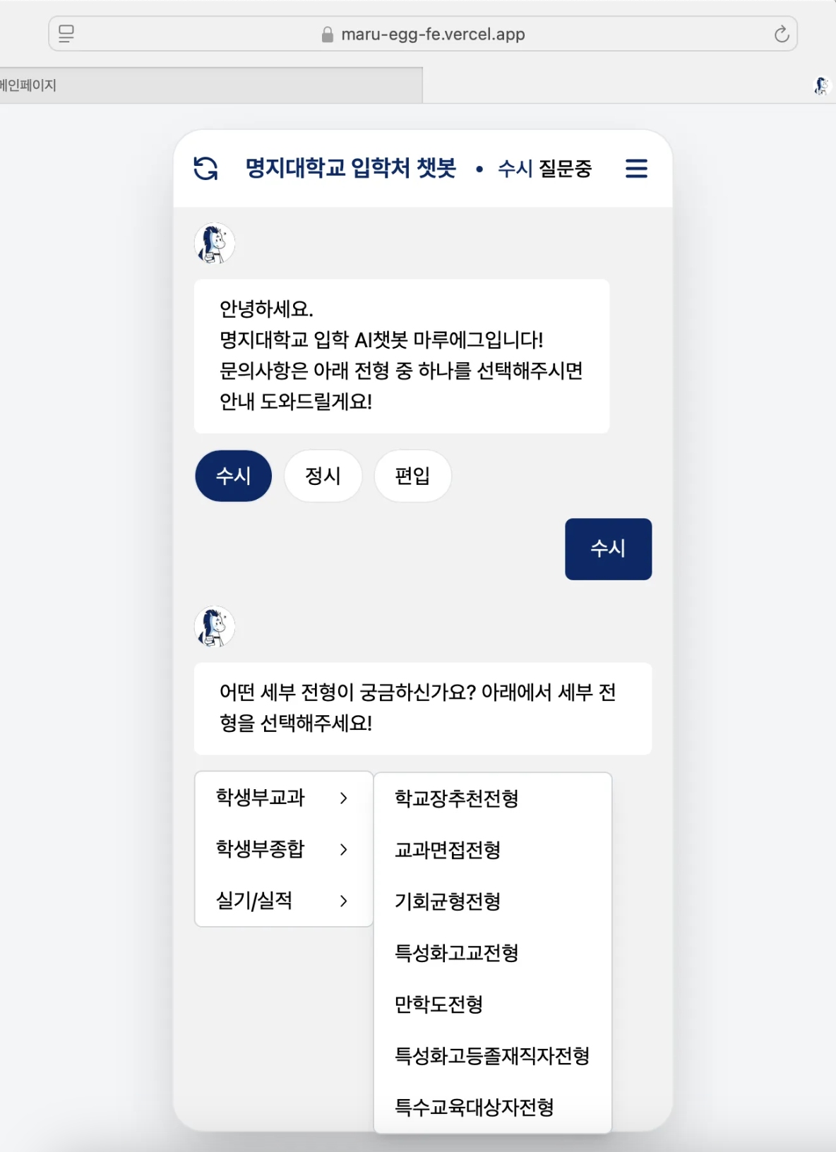 우리가 개발한 입학처 챗봇 서비스가 게시되었다.