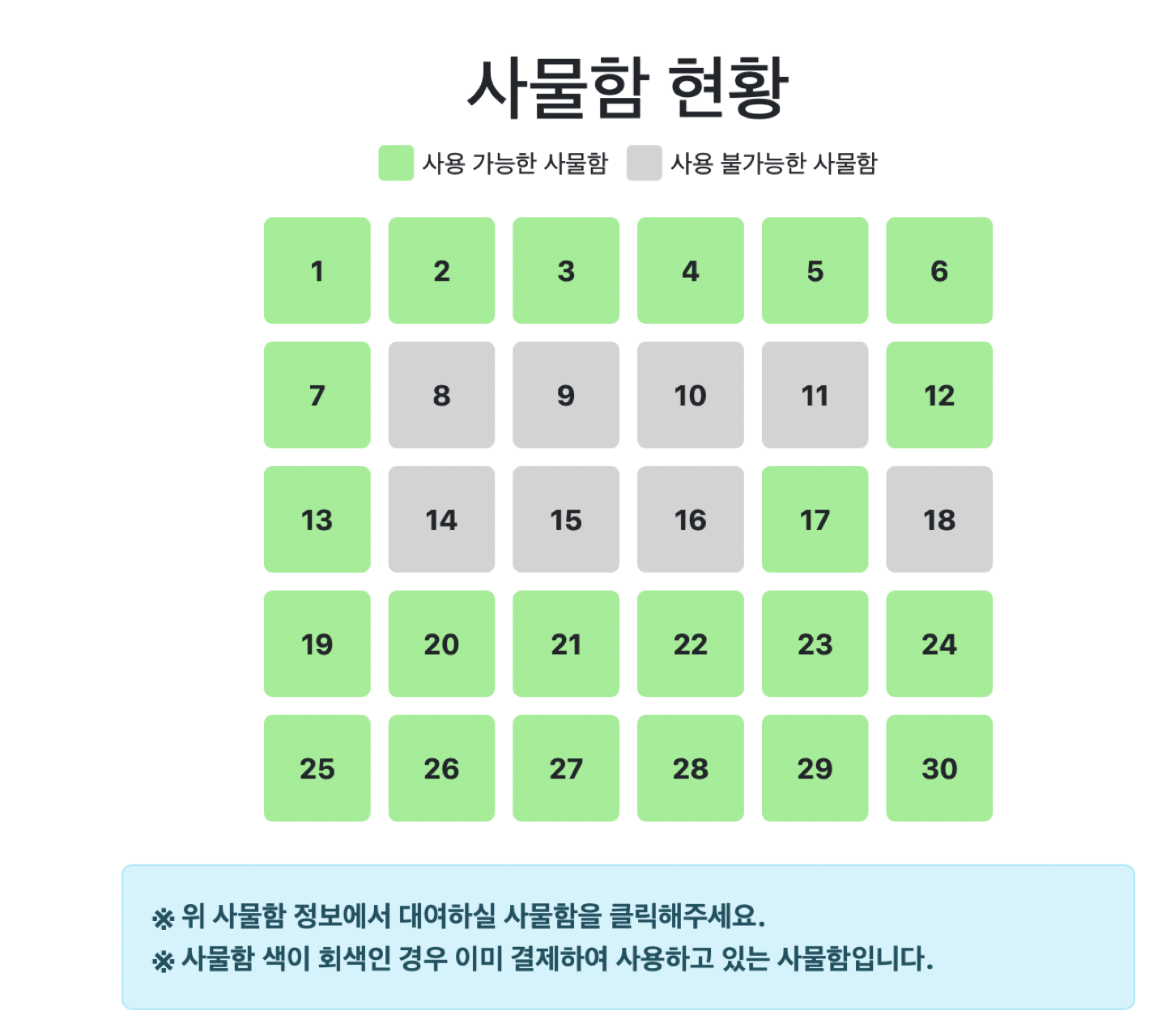=> 위와 같이 사물함 서비스 개발을 모두 마치고 오늘 첫 서비스 런칭이 진행되었다.